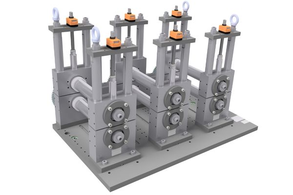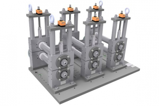 Kassetten drivs av kugghjul på underaxeln, där den undre axeln är fast och den övre är justerbar via en spindel. Denna justering övervakas noggrant med hjälp av våra mätindikatorer, som visar exakt position. Detta är särskilt fördelaktigt vid arbete med ställscheman, då operatören kan justera maskinen enligt specificerade värden för att säkerställa hög produktkvalitet.